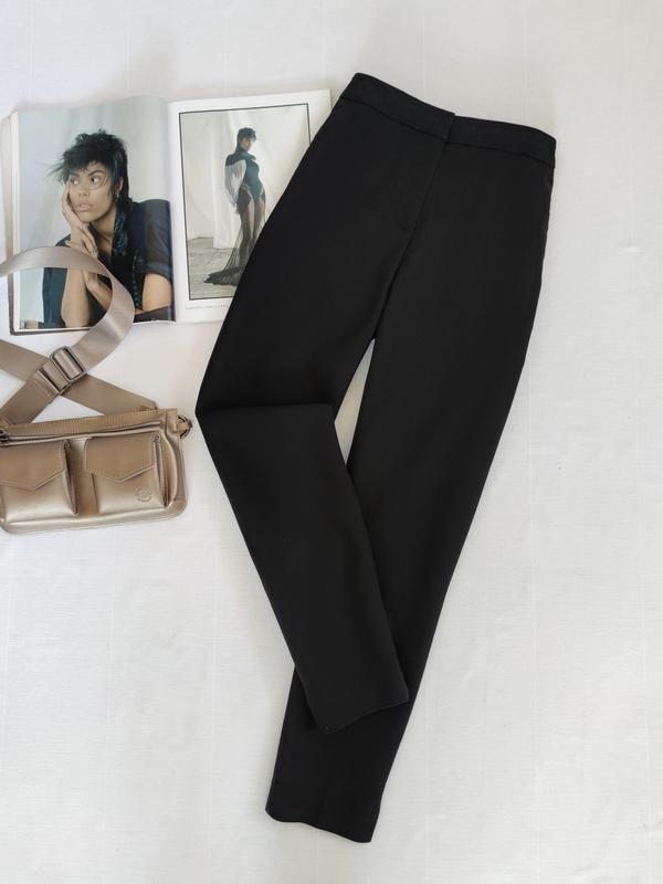 🌿чорні базові брюки H&M з боковими кишенями, завужені до низу, тканина цупка, тягнеться Розмір:34 Заміри: ширина поясу 35 см, ПО бедер 45 см, довжина 92 см