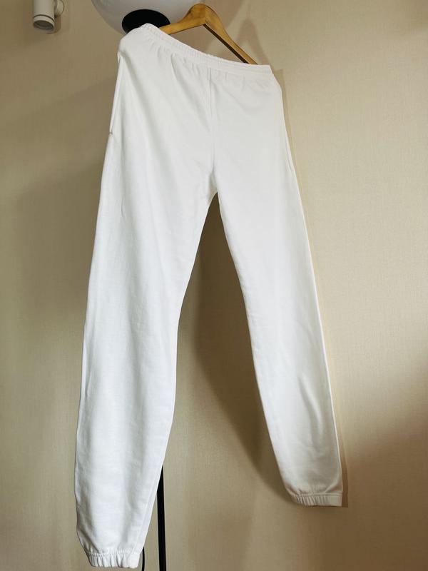 Абсолютно базовые, классные брюки джоггеры белого цвета 🤍 70% коттон, 30% полиэстер. Размер пишет М. Замеры: длина 103, ПОС 49, талия (резинка) 37.