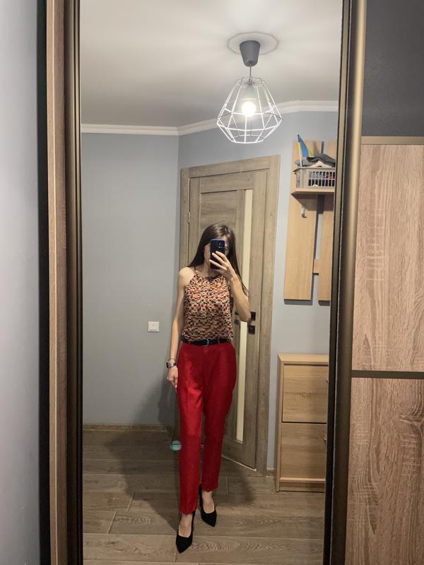 Женские брюки яркого красного цвета Пояс 34 см полуобхват Длина 92,5 Крок 68 Бедра 48 полуобхват