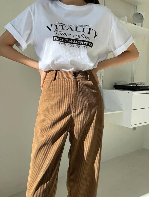 Базовые, укороченные брюки, с высокой посадкой❤️ Они идеально впишутся в твой повседневный гардероб😍 Брюки Размер: 42-44, 46-48 Цвет:,кемел, Ткань: микровельвет