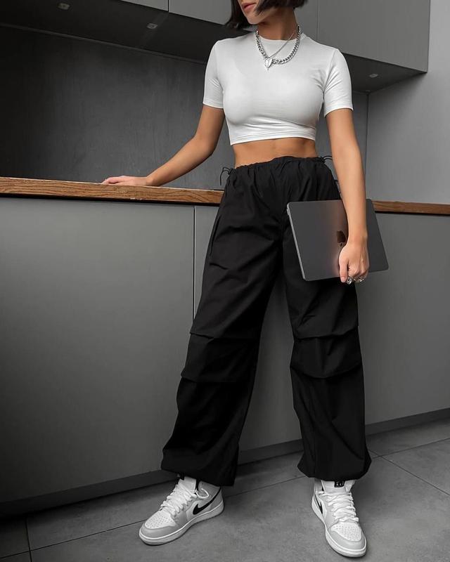 Новинка🔥 Штани карго Мод: so 043 Размеры: 42-44, 44-46 Цвет: беж, черный Тканина: плащовка канада Цена: 619 грн🏷 Широченные брюки карго - это признанный хит. Брюки идут с двумя функциональными карманами сзади и двумя карманами на кнопках по бокам. Прошивка в районе колен, как на фото. Талия на резинокочках с затяжками, можно выбирать как носить: высокая или средняя посадка💪🏼 Создано с вдохновением❤️