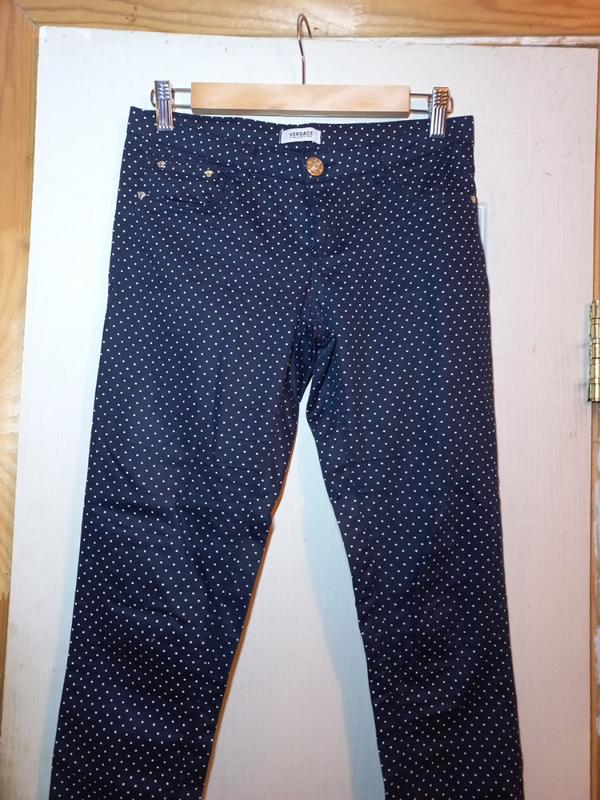 Штани VERSACE Стан: ідеальний ( одягала 2 рази ) Трішки тягнуться Розмір: 26 ПОТ: 36 см ПОБ: 47 см Довжина: 93 см Ширина штанини знизу: 13 см
