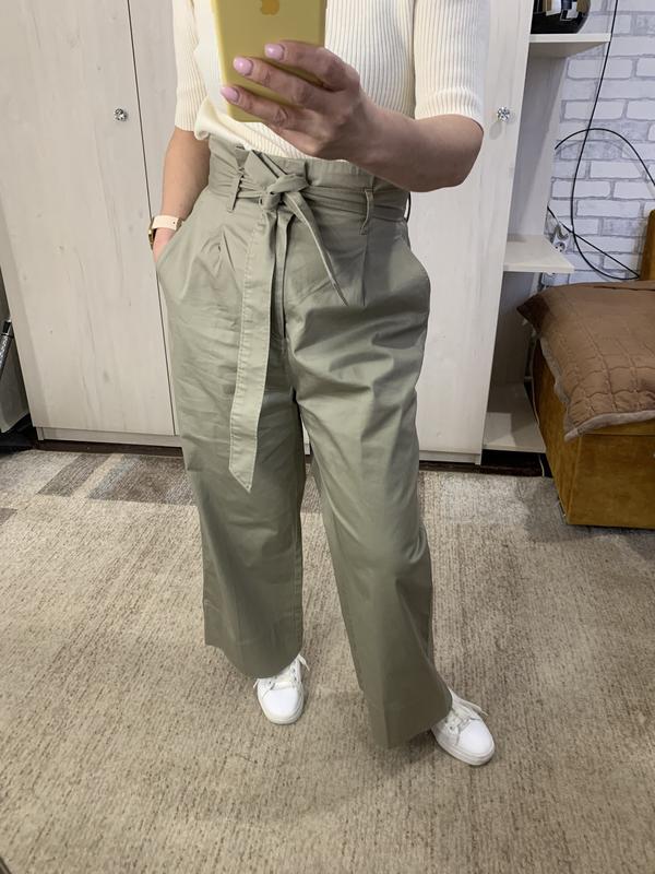 Стан идеален! По ощущениям плотный коттон с эластаном, немного тянутся! Размер около 38 По поясу 39 По стегнах 57 Длина 99 Шаг 61 Ширина штанины у промежности 34 Ширина в колене 30 Ширина внизу 28 Посадка 43