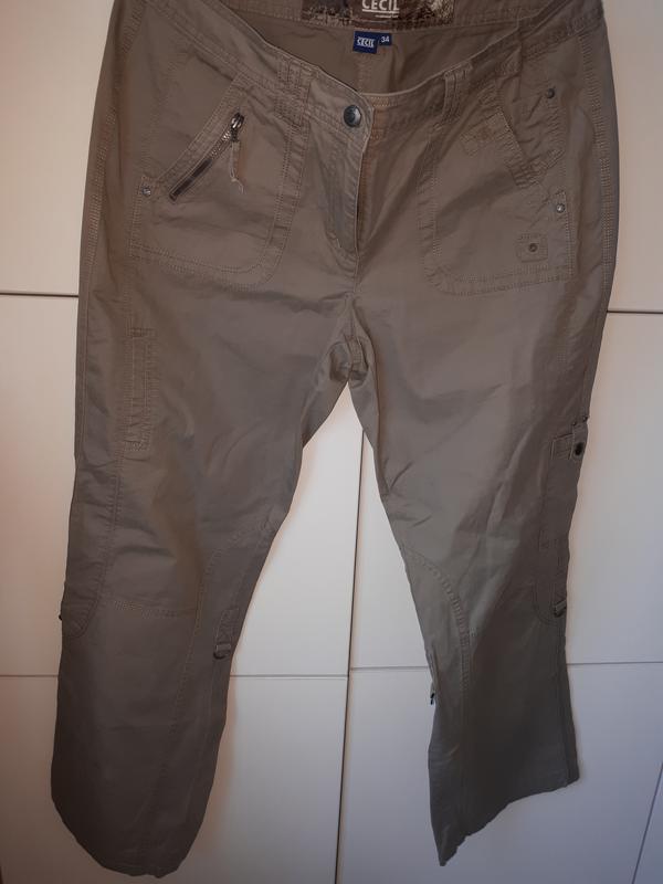 Отличные натур.брючки на каждый день. Можно подкатывать(последнее фото). Ткань средней плотности,нюансов Нет. Длина 100,талия 103,посадка перед 22,зад 37,штанина верх 33.5, низ 26. Бирки нет. Коттон