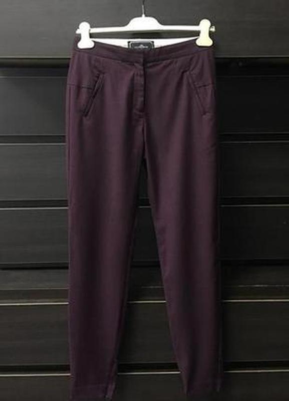 Классные брючки. Размер 36. Полиэстер, вискоза, шерсть. Внизу замочки. Состояние отлично. Пояс 36 Бедра 47 Длина 97 Шаг 71,5 Посадка спереди 28 Ширина внизу 12,5 Состав: шерсть, вискоза, полиэстер