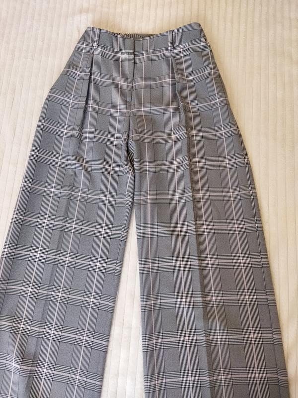 Брюки палаццо от Н & М в клетку, в идеальном состоянии, имеют довольно глубокие боковые карманы. Спереди имеют защелки, есть шлевки на ремень. По замерам имеют полуобхват пояса - 41 см, по бёдрам - 60 см ( должны быть свободными). Длина - 105 см, ширина штанины сверху 33 см, снизу - 29 см.