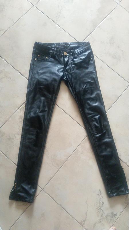 Классные брюки из качественной экокожи, матовый легкий блеск, качественная фурнитура. В идеальном состоянии. длина 95 см. в поясе полуобхват 35 см