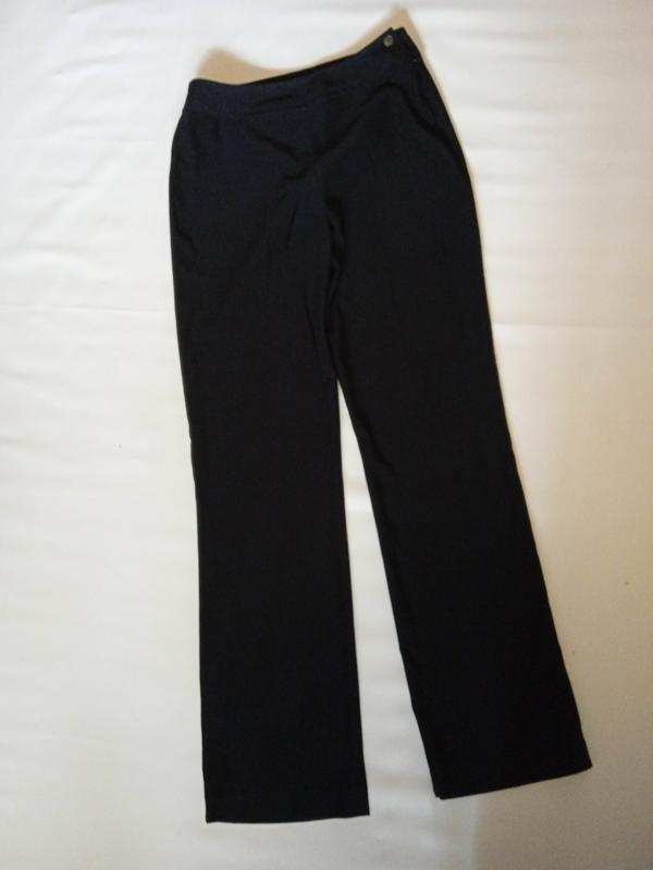 Брюки черные, очень красивая ткань,бренд,ткань тянется,бу немного,длина104,пояс35-36,бедра49 тянется примерно до54,штанина внизу20, посадка спереди32, посадка сзади36см.