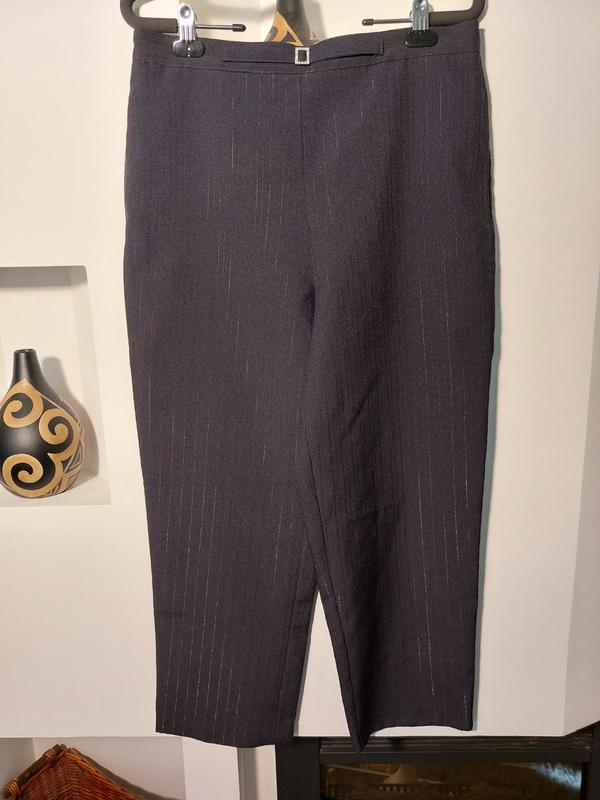 состояние идеальное черного цвета с люриксовой нитью пояс сзади на резинке прямого кроя высокая посадка два боковых кармана полиэстер сезон весна лето осень замеры пот 42/48 поб 53 посадка 33/43 длина 97 шаговый 66 низ по 20,5