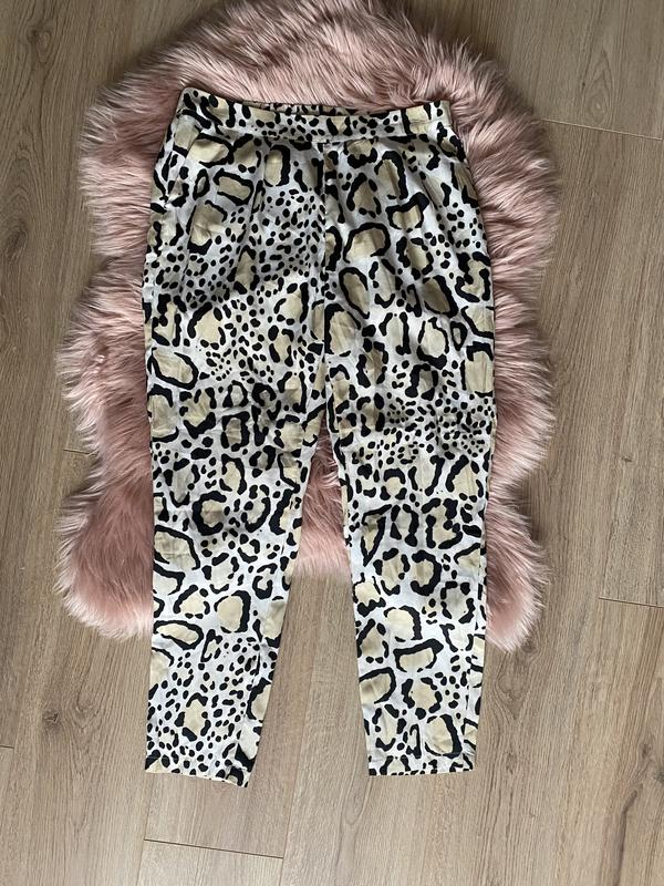 Стильные Легкие леопардовые брюки брюки брюки Ginatrikot на высокой посадке, в идеальном состоянии как новые, размер М, пот 38 ( сзади резинка - будет до 45., поб 55., посадка 26 см., длина 96 см., шаг 68 см.