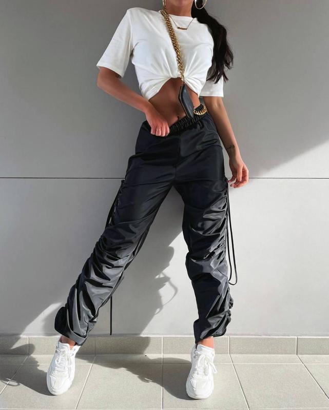 Новинка в наличии❗️ 💥Штани карго Модель 250 ▫Тканина - плотна плащовка ▫Размеры - 42-44 и 44-46 ▫Цвета - графит, черный Это просто взрыв 🔥☄️🔥 Такой модели брюк у вас точно еще не было ✨ Брюки имеют высокую посадку и широкий крой, что обеспечивает комфортное прилегание к телу и свободу движений. Плотная плащевка обеспечивает тепло и защиту, а также устойчивость к износу🫧 Затяжки по бокам позволяют регулировать ширину и длину брюк😘 Супер качество ❗️ ▪Цена550 грн