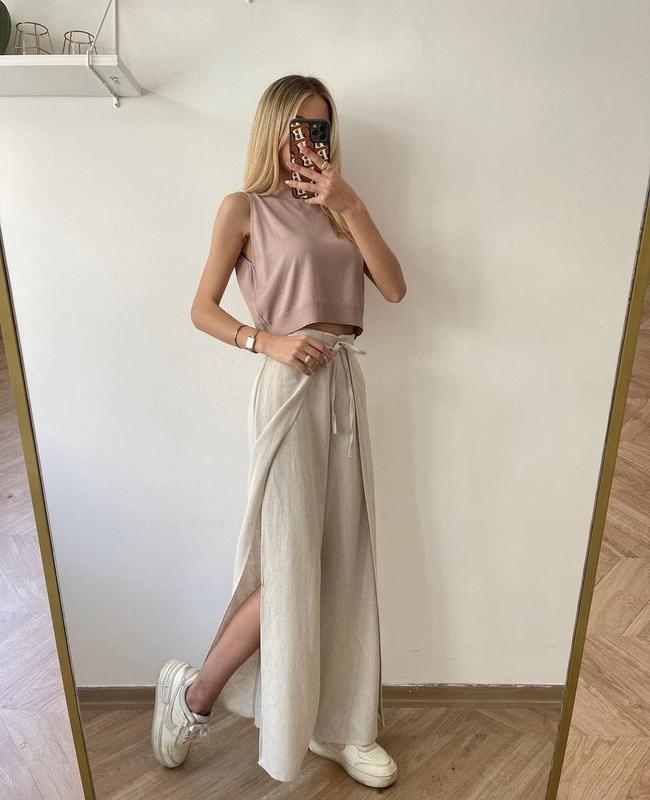 🛍Брюки 📌Модель: 4284 🎨Колір: смарагд, беж, чорний, малина 📐Розмір: 42-44, 46-48 🪡Тканина: штапель льон Брючки, які тобі захочеться носити кожен сезон🔥 Універсальний вільний крій, дуже легка тканина та нескінченно комфортна посадка, попереду зав'язується, ззаду на резиночці😋