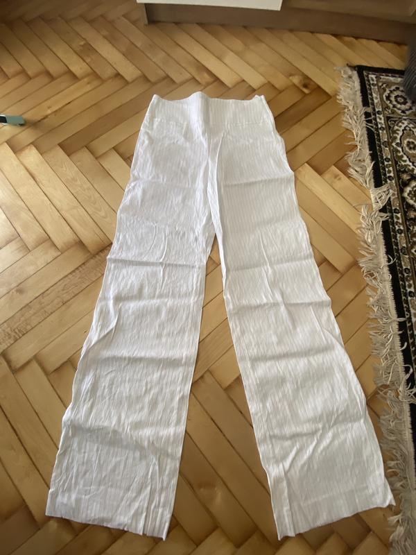 Льняные брюки в полоску 35 см полуобхват талии Длина 107 см