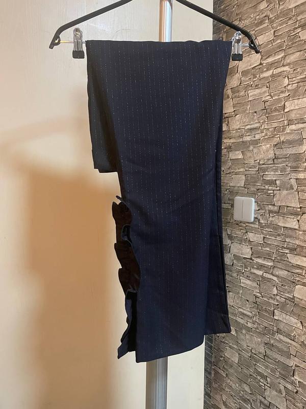 Довжина 90см, ПОТ 40см, ПОБ 49см, чорного кольору, полоски- сріблясті, з карманами боковими, тягнуться.