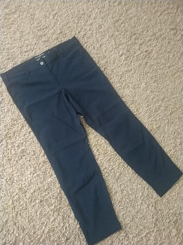 качественные эластичные брюки, 70% вискозы в составе, красиво тянутся, цвет темно-синий, ближе к черному. размер евро 48 (XXL-XXXL). карманы все функциональные. бирки порезаны. замеры: гаполуобъем талии 51см, полуобхват бедер 54см (тянется до 67см), посадка перед 27см, посадка зад 44см, длина 101см, полуобхват брючины по низу 18,5см. крой как у джинсов.