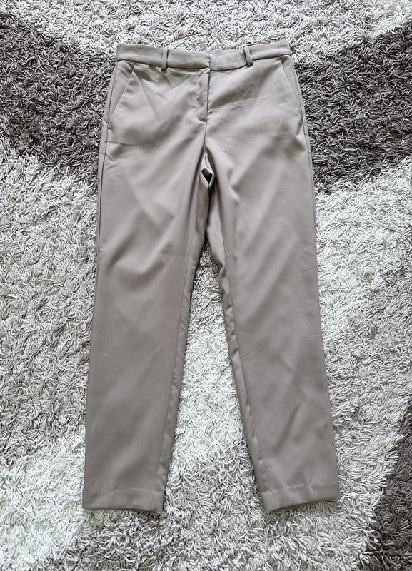 Стильные брюки фирмы H&M.стан идеальный.красивый песочно-бежевый оттенок.очень приятные к телу.размер срезан.по замерам М. присмотритесь на замеры:пояс-39см,бедра-49см, посадка-спереди-28см,ззади-41см, длина-97см, м, ширина штанины внизу-15см. Смотрите другие Мои объявления Отправка только накладным платежом по предоплате 170 грн или полная на карту