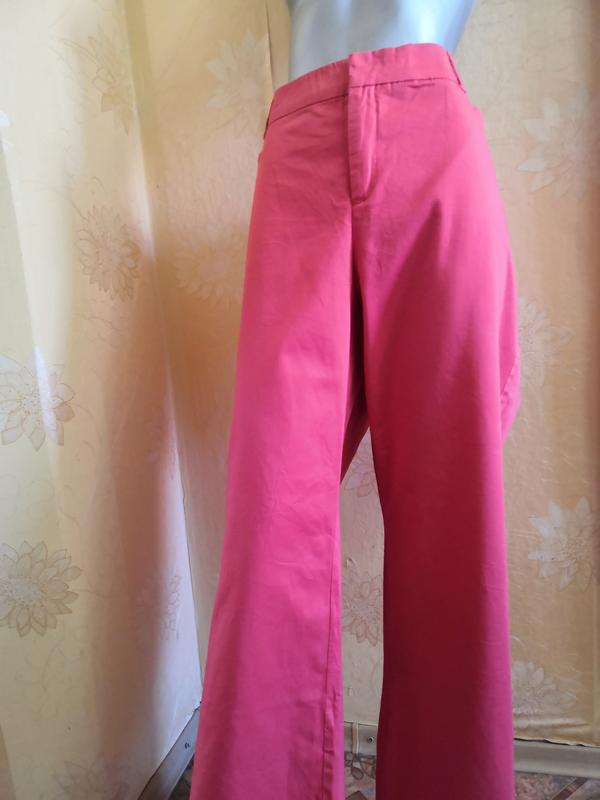 Брюки. Размер - 54. Полуобхват талии - 51 см., тянется до 58 см. Полуобхват бедер - 62 см. Посадка - 29/47 см. Крок - 80 см. Длина всей вещи - 111 см. Ширина штанины вверх в полуобхвате - 36 см. Ширина штанины в незу в полуобхвате - 27 см. Цвет светлее, чем на фото. Ткань немного тянется. Брюки тоненькие.