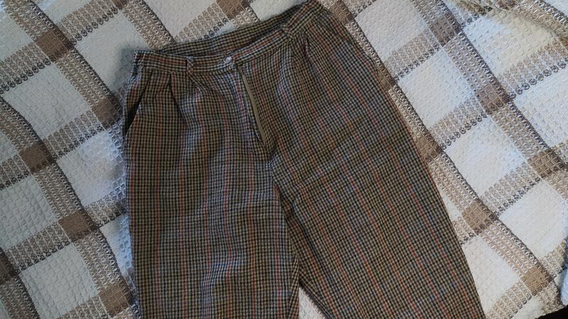 Брюки-бананы с принтом в мелкую клетку. высокая посадка с подвернутыми манжетами