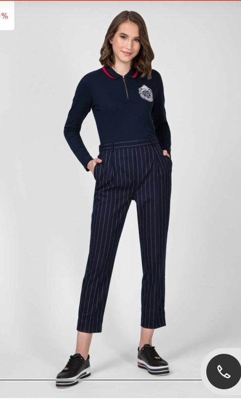 Брюки на резинке, темно-синего цвета, с высокой посадкой на талии, из высококачественной костюмной ткани можно сочетать с жилетом и жакетом. Так же брюки прекрасно дополнят look с футболкой или рубашкой. Отличная посадка на фигуре, модная тонкая полоска, боковые карманы - эти брюки будут радовать вас не один сезон. размер 50-52 ПОГ 43+резинка тянется НОБ 60 длина 88/62 посадка 31/43 ширина штанины 34/17 пересылка новой или Укрпочта