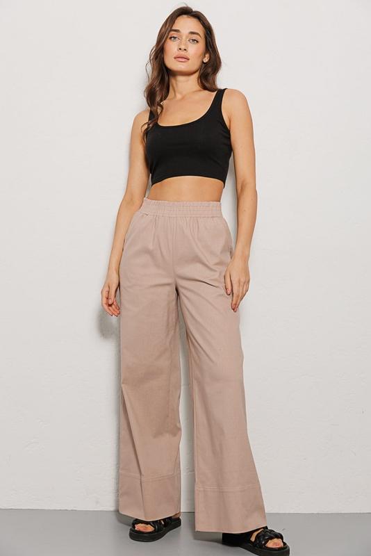 Український бренд Arjen З такими легкими лляними брюками-палаццо ви зможете носити і улюблені базові футболки, і гарні шифонові блузки, і стильні сорочки оверсайз, створюючи кожен раз новий образ в теплу погоду. Ця модель йде з втачним поясом на широкій гумці вгорі, і з прямими краями з широкими вилогами внизу, захованими всередину брюк і закріпленими машинною строчкою. Також угорі розташовані прорізні кишені з косими зрізами. Розмір - М Заміри на фото