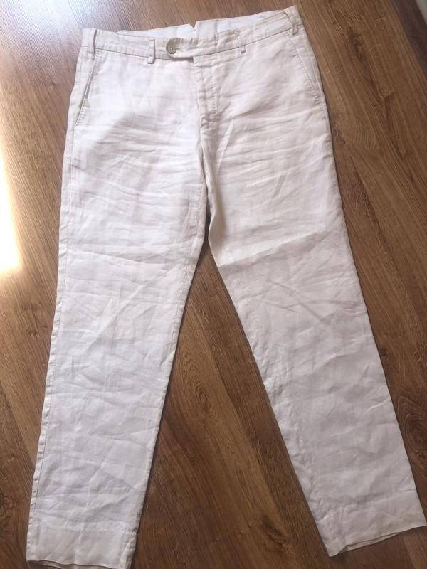 Брюки Massimo Dutti из очень качественной и невесомой льняной ткани премиум качества. Цвет пригляну перламутровый, нет, он не блестит на солнце, просто такой оттенок ткани, нажаль, камера не передает. Размер М, ординироваться на замеры: ПО поясу- 40 см; ПОБ- 50 см; глубина посадки спереди- 25 см; ззади- 32 см; длина: внутрішня сторона- 98 см; внешняя- 76 см; ширина штанки внизу- 17,5 см. Брюки новые, без бирки, обрезала, не носила, поскольку после родов не подходят по размеру