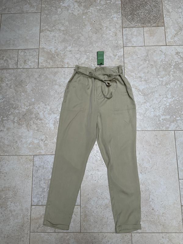 Штаны легкие. Оливкового цвета. На резинке по спинке, с поясом