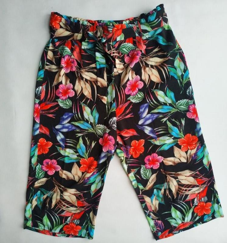 размер указан 16/18 Полу обхват талии 45-50 см( на резинке) полхват бедер 63 см, высота посадки 40/53 см, длина 87/50 см, ширина штанины 38/29 см Состав:100% полиэстер