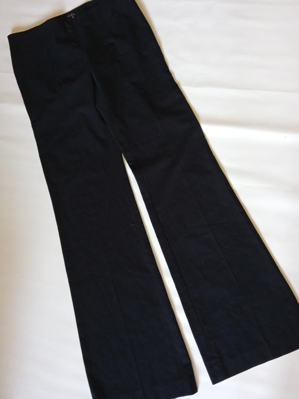 колір чорний,штанини розширені,довжина107,5,пояс 41-43,,бедра50-56,штанина внизу25,посадка зпереду22,посадка ззаду38,хороший склад тканини,32% віскоза. ш2/5