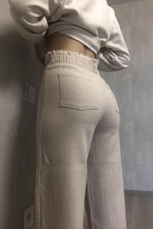 Очень приятная ткань,дут чуточку укороченным фасоном и очень легкие.Ходила в них всего несколько раз.