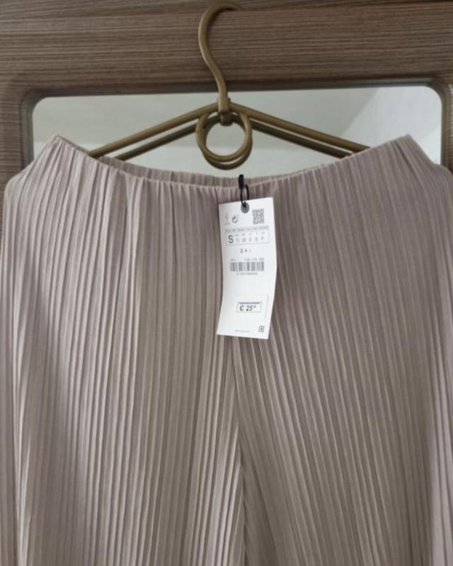 Zara original, с бирками, в наличии размер S. ШИРОКЫЕ ШТАНЫ С ПЛИСОВКИМ. Брюки с высокой посадкой и широкими штанинами. Эластичный пояс, складки, нижние кромки бесшовные узоры. Вариант на лето просто безупречен, на теле невесомы. Длина внешнего шва 104 см, по внутреннему 82 см. Полу ОТ 32 ( пояс на резинке, поэтому регулировать можно), полу ОБ 42 (в падении от пояса) до 47 (при раскладке ткани за счет плессировки)
