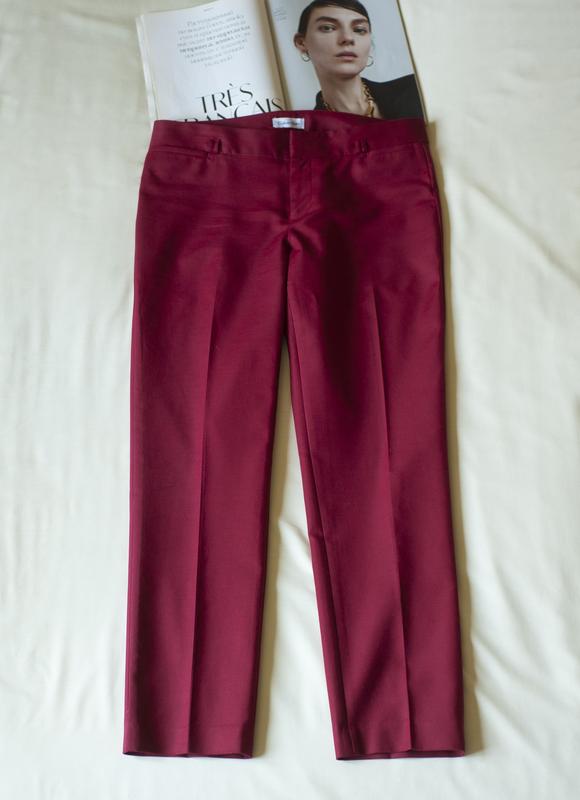 Бордовые брюки американского дома моды Calvin Clein. Брюки из натуральной ткани – коттоны. По бокам есть маленькие карманы. Низкая посадка. Ткань средней плотности. Очень качественные крой и швы. Бордовые брюки женские в идеальном состоянии, никаких недостатков нет. 🌿🌸🌿🌸🌿🌸🌿 ♥ ПО талии 44 см (низкая посадка) ♥ ПО бедер 52 см ♥ Шаг 73 см ♥ Посадка спереди 23 см ♥ Посадка сзади 38 см ♥ Длина изделия 97 см Состав: 97% котон, 3% спандекс. 😊P.S. Подписывайтесь на мой профиль ""https://shafa.ua/member/patsiorka"", я обновляю ассортимент 5-6 раз в воскресенье!!!😊 Больше рубашек и блузок можете посмотреть здесь: https://shafa.ua/member/patsiorka?category=21 Больше кофт, свитеров и кардиганов здесь: https://shafa.ua/member/patsiorka?category=32 Больше платьев здесь: https://shafa.ua/member/patsiorka?category=10 Больше штанов здесь: https://shafa.ua/member/patsiorka?category=24