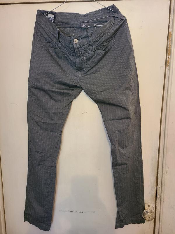 Полуобхаат талии 41,длина по боковому шву 103,по внутреннему 78,штанина низ 15,полуобхват бедер 57,посадка перед 23,тонкий хлопок.