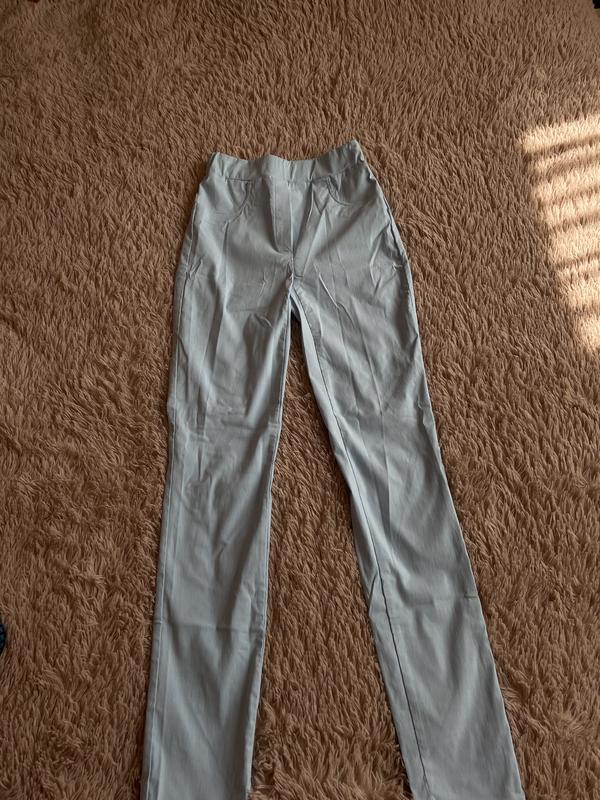 Брюки голубого цвета. На резинке хорошо тянется. Высокая посадка. На высокую девочку.