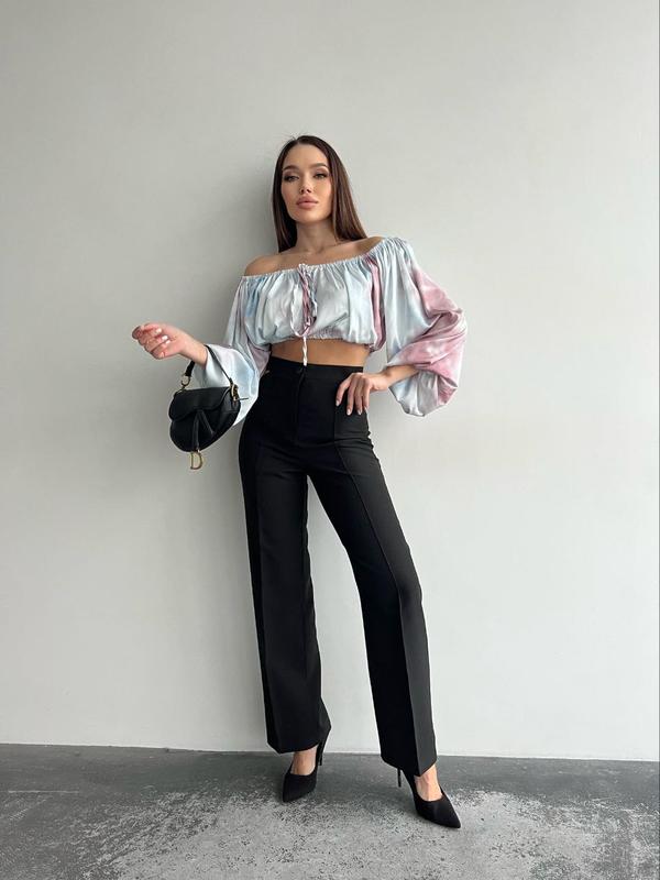 Штани Модель 495 Тканина: костюмна Розміри: 42-44, 44-46 Кольори: чорний, беж, кемл Трендові штани з високою талією та ефектними вирізами на боках, що надають пікантності образу❤️ Фото Реал ⬇️⬇️⬇️ Рябина