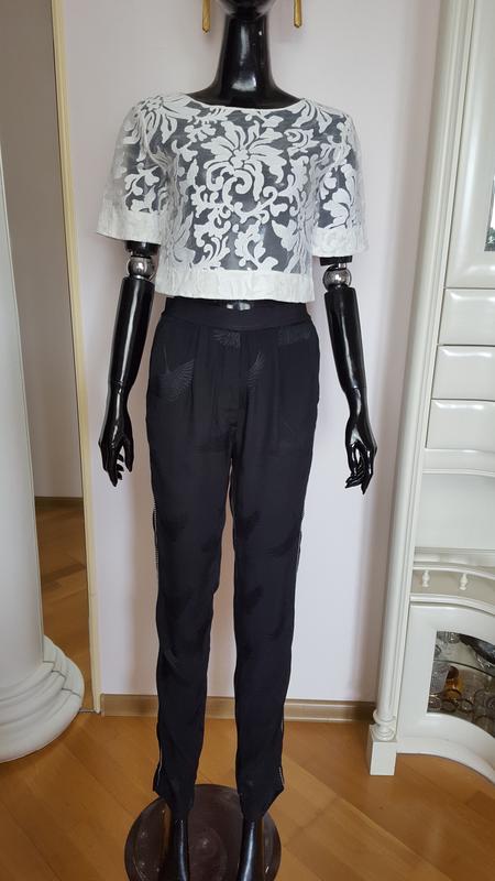 Летние брюки Sandro. очень красивый и стильные брюки с высокой посадкой. Есть боковые карманы . Красивая декоративная белая тесьма по бокам. Подойдут на все случаи жизни.