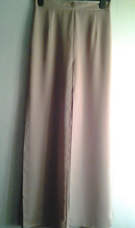 Красивый оттенок бежевого Замок сзади Резиночки в поясе сзади, по бокам Внизу - брюки Сверху - полотна ткани, которые имитируют юбку Очень эффектно развеваются при ходьбе Высокая посадка Пояс 35 Бедра 46 Длина 107