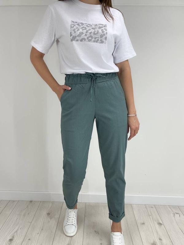 Тканина льон стрейчевий цвет черный, графит, мокко, мята, джинс размер 42,44,46,48,50,52 Талия на резинке, посадка высокая, с карманами