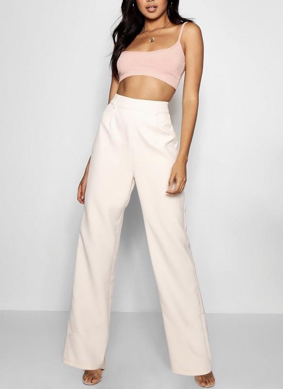 Брючки в красивому бежево нюдовому відтінку ідеально сідають по фігурці розмір 8 М ,можна носити ,як з кросівками так і з кедами Базовий фасон з високою талією ,стан в ідеалі дуже круто видовжують ніжки за рахунок фасоном пояс 36см поб 46см довж 120 см