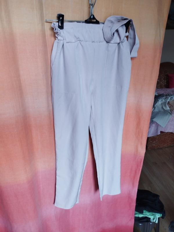 Брюки с высокой посадкой.Размер 46-48.пояс 60,в растянутом состоянии 75.Потолчная 100, крок 63. Цвет беж,складыш приятный к телу полиэстер.