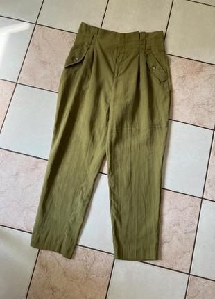 Штани чудової якості красивого крою колір оливкова тканина натуральний Ліоцел виробництво Туреччина, пояс 40 стегна 55 крок 66 довжина 102 з боків дві кишені глибоких застібається на блискавку та два гачки тканина легка літня натуральна посадка висока крій мом, нюанс на фото