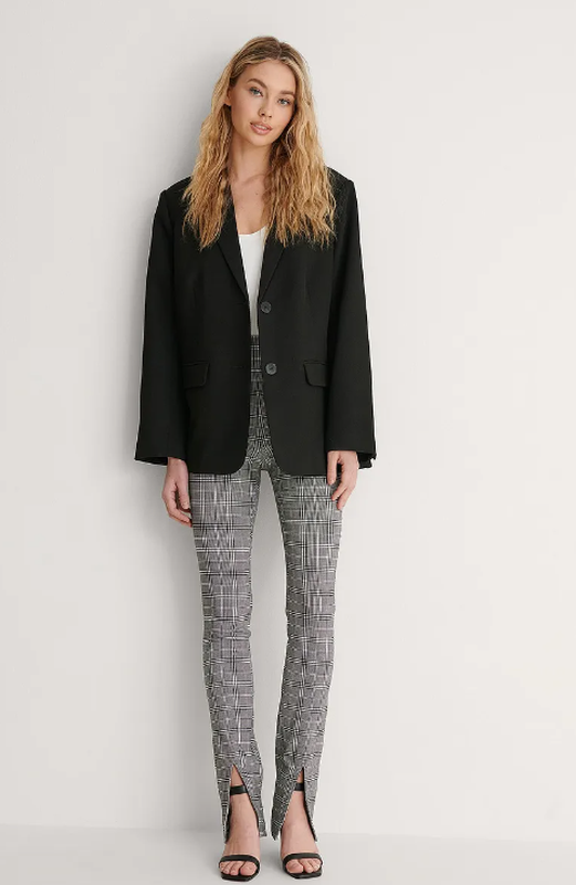 Брюки в клетку, стрейчевые. Высокая посадка. Снизу с распорками. Бренд: NA-KD Размер: 34 Состав ткани: 50% вискоза, 36% полиэстр, 14% полиамид Параметры: в поясе 28-30 см в бедрах 38-40 см длина 110 см