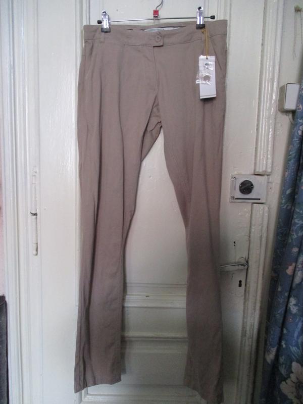 брюки бежевого цвета.98 хлопок 2 спандекс.ПОТ 40.ПОБ 55.длина 104.ширина по низу 15.стрейч.посадка 24-29