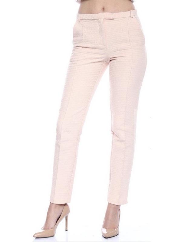 Штани літні, прямого крою, на поясі, прошиті стрілки, тканина цікавої структури, 35 % коттон, з боків кишені, ззаду імітація, пудрового кольору