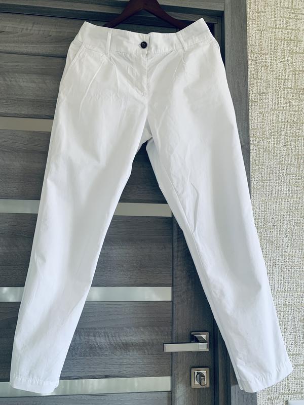 Крутые, качественные, белоснежные брюки. Длина - 99/74 см., пояс - 44 см., бедра - 58 см., посадка 27/39 см., калоша - 33/17 см. Четыре работающие карманы. Третья вещь с наименьшей стоимостью в подарок 🎁