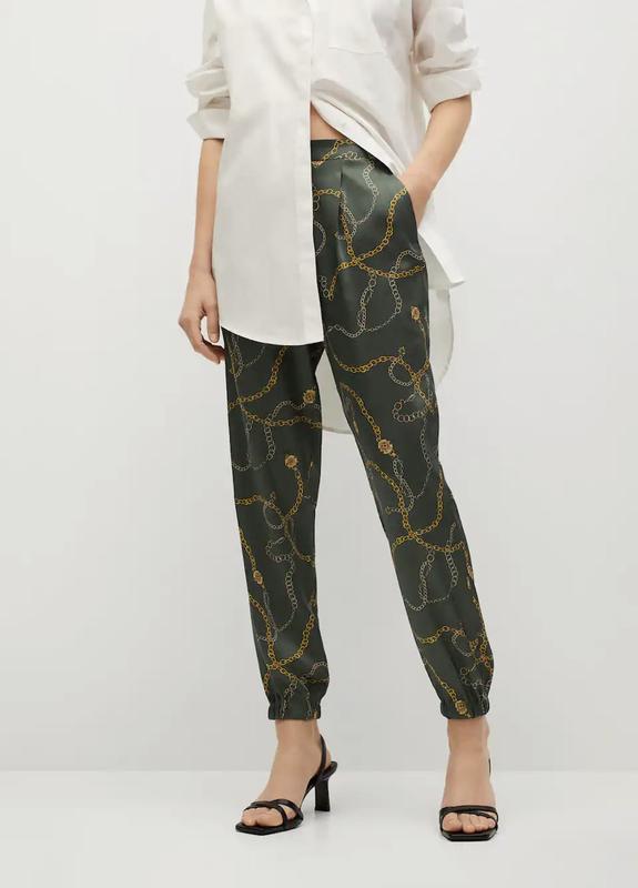 Джоггеры манго из струящаяся ткани с сатиновым эффектом. Узорчатый дизайн. Средняя посадка. Эластичная талия, резинки внизу штанин. Боковые карманы. Прорезной карман сзади. Спереди защипы. Размер S. Замеры изделия: ПОГ в свободном состоянии 34, 5 см, ПОБ 52 см, высота посадки 29 см, до на по боковому шву 98 см, внутренний шов 70 см. Состав: 100% полиэстер. Машинная стирка. Цена указана за джоггеры. Наложенным только НП по предоплате 120 грн.