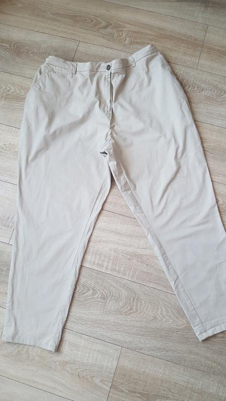Хорошие брюки, приятные на ощупь. В поясе сзади резинка. Имеют 4 кармана. Пуговица в поясе слегка перешила. Есть едва заметны несколько точек(на фото). Больше дефектов нет. Все замеры на фото.