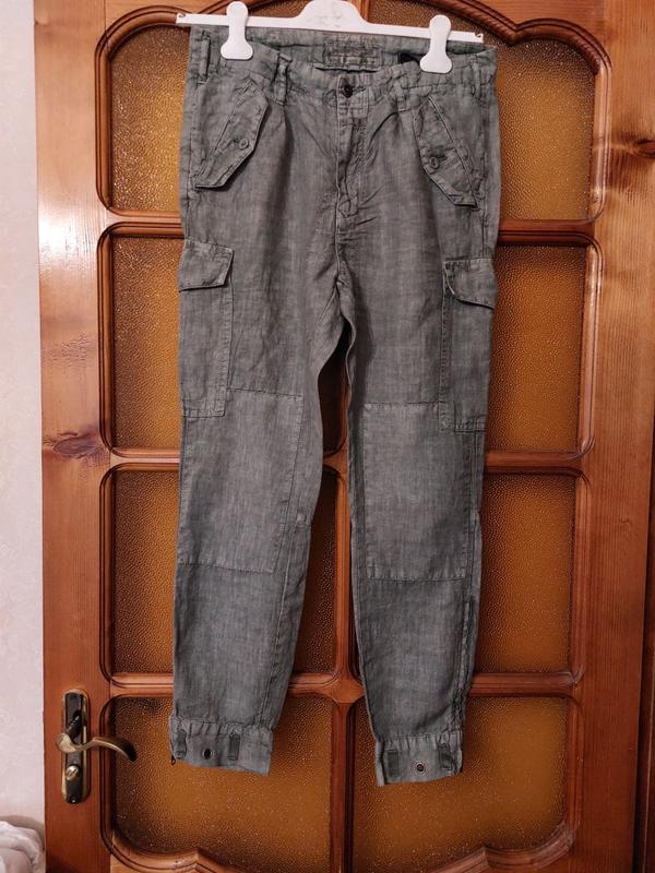 Брюки лен цвет хаки