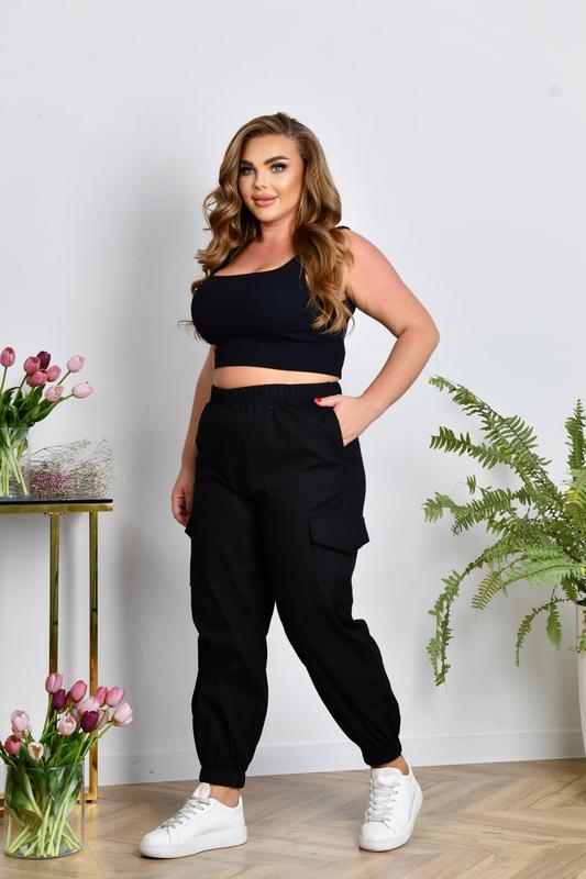 Код 3655 Ткань: Стретч-лен 100% натуральный. Цвета: молочный, черный, темно-синий, шоколад, капучино, хаки. Размеры: 48-50, 52-54, 56-58, 60-62, 64-66. Длина брюк по внешнему шву: 96, 97, 100, 103, 106 см. Длина брюк по внутреннему шву: 70, 70, 72, 74, 76 см. Замеры готового изделия: 48-50 ОТ 73/112 ОС 112 52-54 ОТ 80/122 ОС 120 56-58 ОТ 87/128 ОС 128 60-62 ОТ 94/136 ОС 136 64-66 ОТ 101/140 ОС 144 Невероятно стильные брюки-карго из стретчевого льна ( растяжимость средняя). Ткань приятная, натуральная, отлично дышит. Брюки по талии собраны на резинку. В боковых швах обработаны карманы. Чуть ниже линии бедер накладные карманы с клапаном. Низ штанин на резинке.