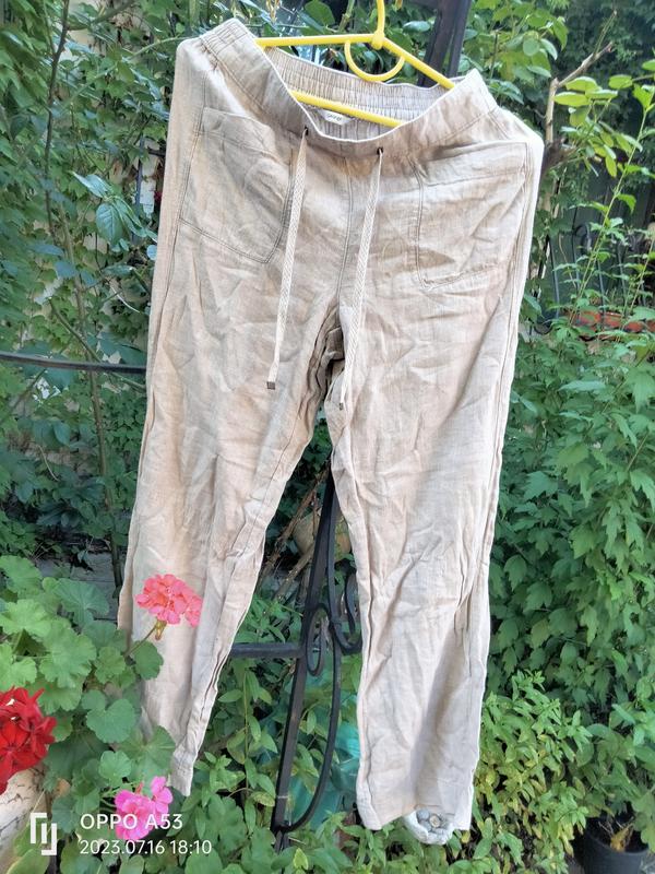 Классические прямые брюки на шнурке,карманы, структура льна ближе к домотканому,цвет натуральный серый. Пот 41 Поб 50 Д 96