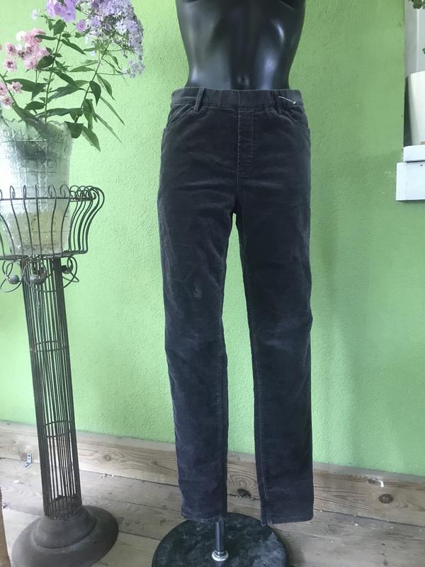 Красивые велюровые брюки с высокой талией от Uniqlo. Цвет серый. Модель без застежки, по талии-широкая резинка. Состав: хлопок/вискоза/акрил/эластан(81/12/4-3). Размер по набору-М. Замеры:длина по внешнему шву-101 см, по внутреннему-75 см, ПОТ-38 см, ПОБ-45 см, полуширина штанины по низу-12,5 см.